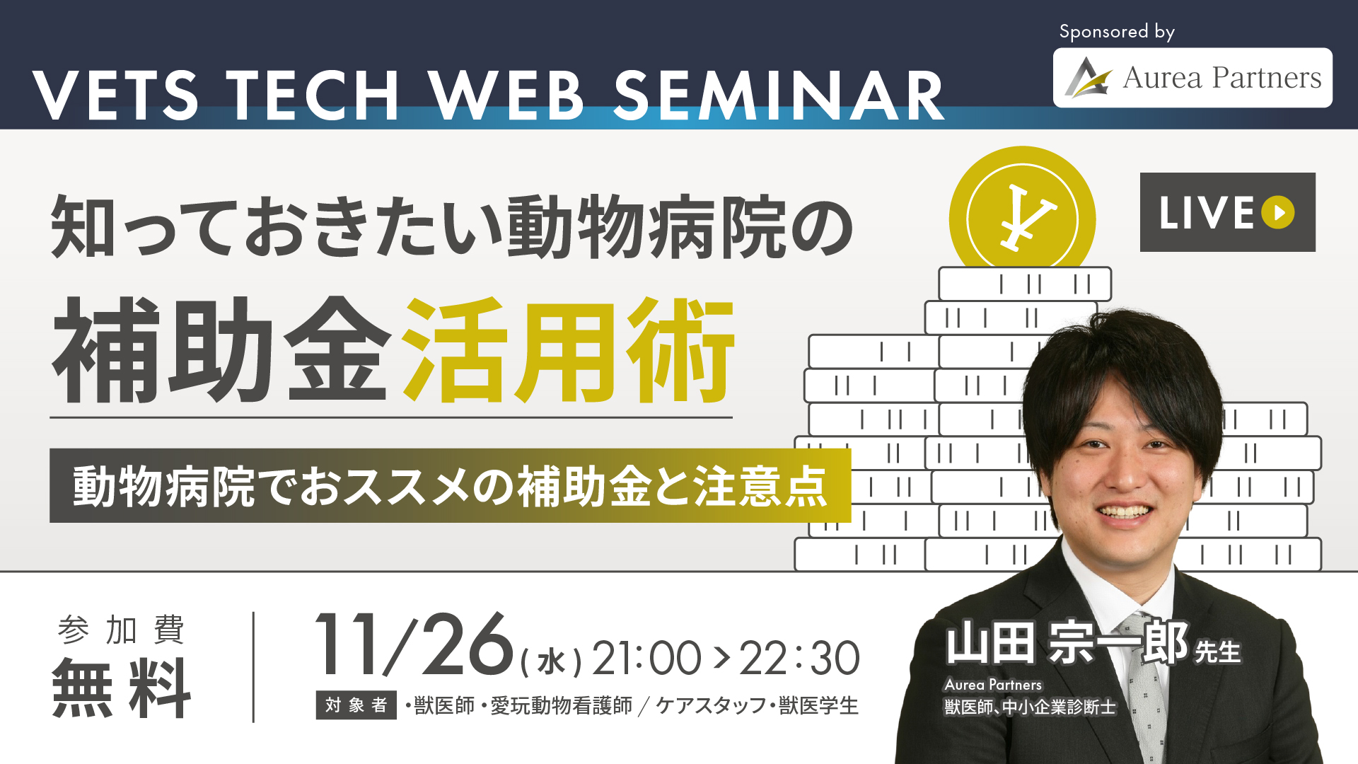 講師はVETS TECH初のご登壇となります獣医師であり、中小企業診断士の山田 宗一郎先生を講師としてお迎えして開催致します!