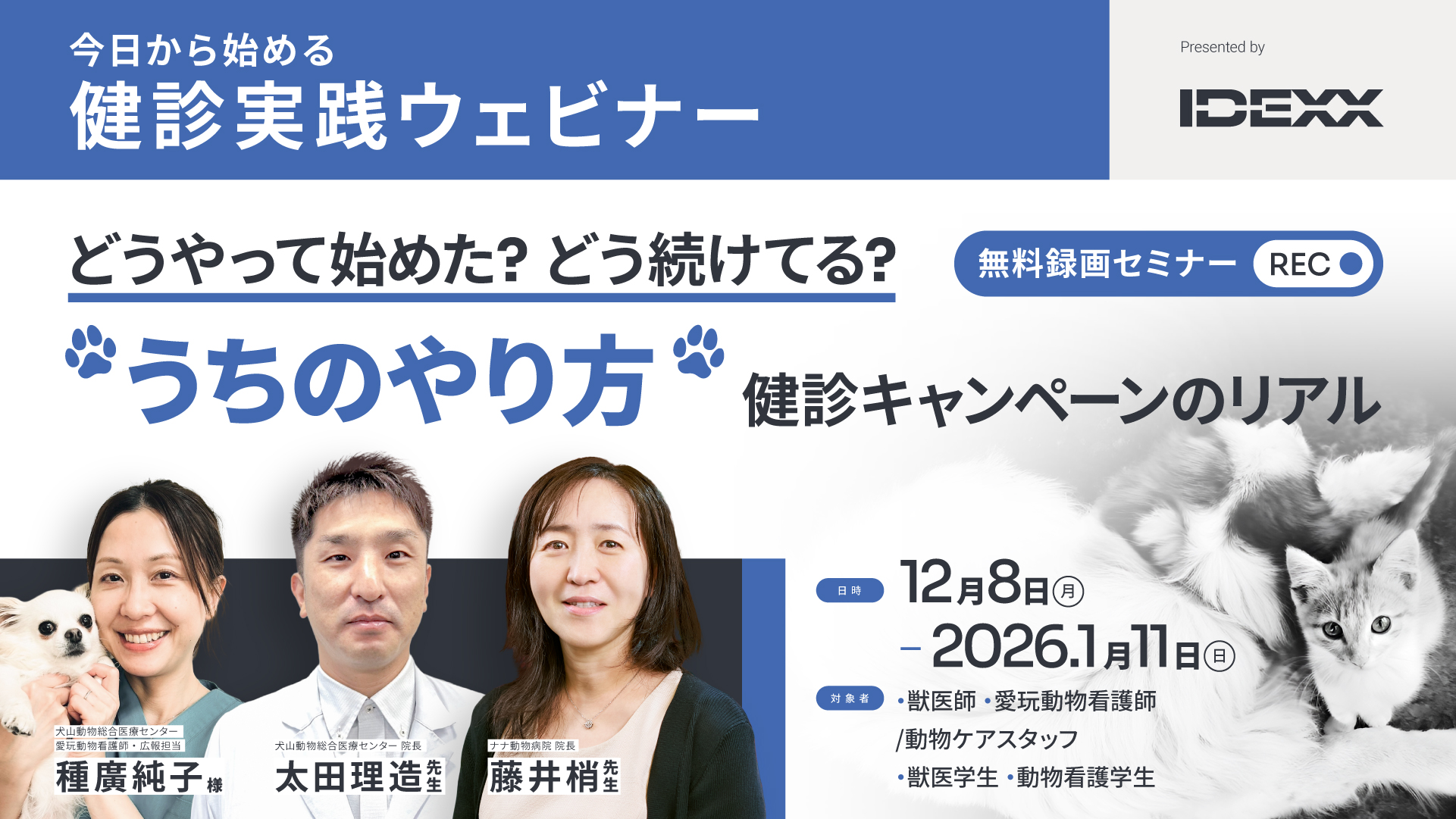 IDEXX主催今日から始める健診実践ウェビナーをお届けいたします!