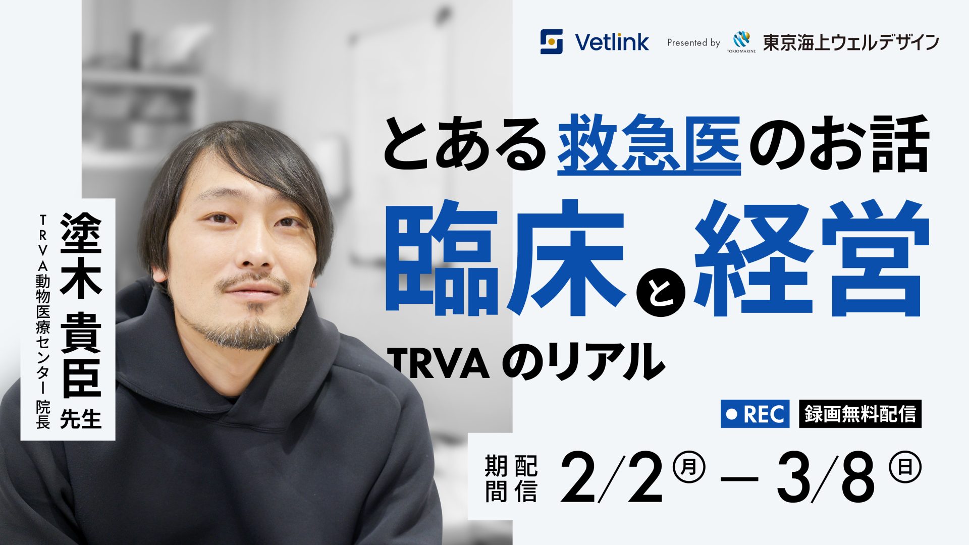 TRVA動物医療センター 院長の塗木貴臣先生によるとある救急医のお話「臨床と経営」TRVAのリアルを期間限定で配信します!