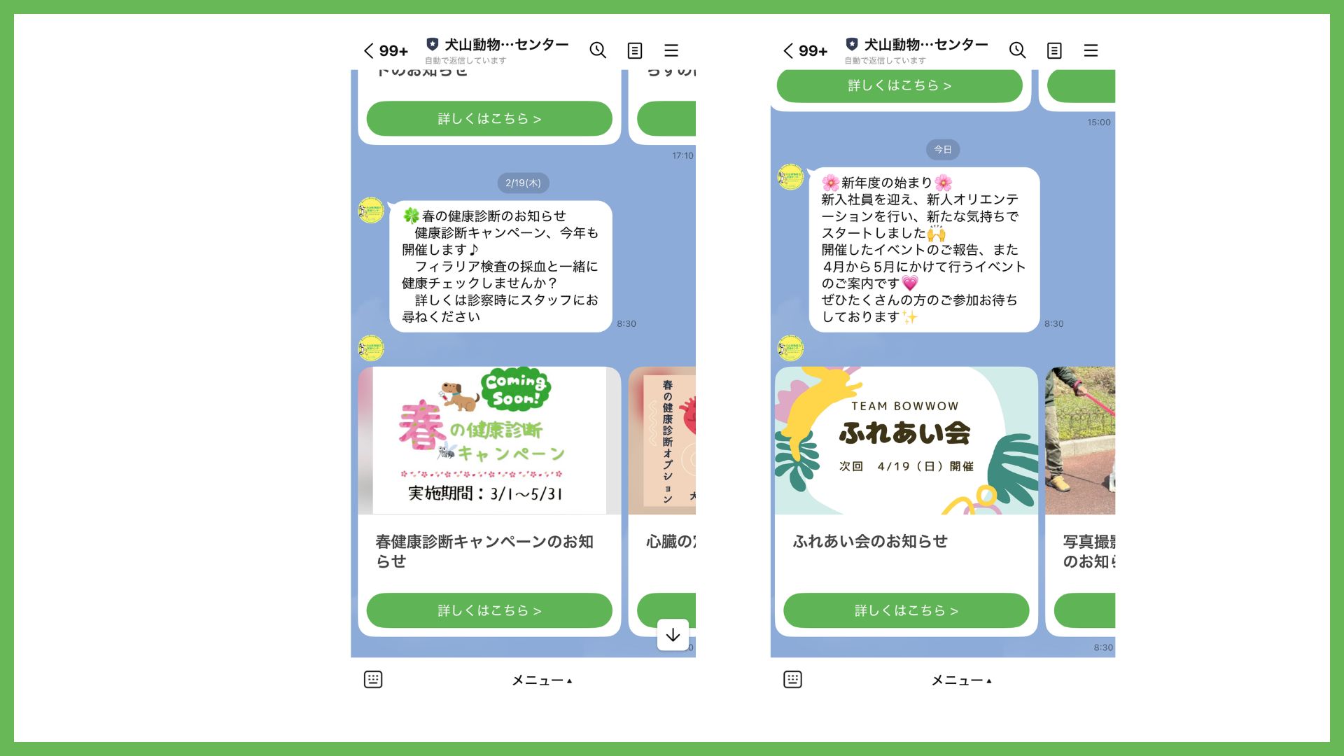 以前はLINE配信だけだとどうしても文字量が多くなってしまい、飼い主様にスクロールして読んでもらう手間をかけさせてしまうのが課題でした。